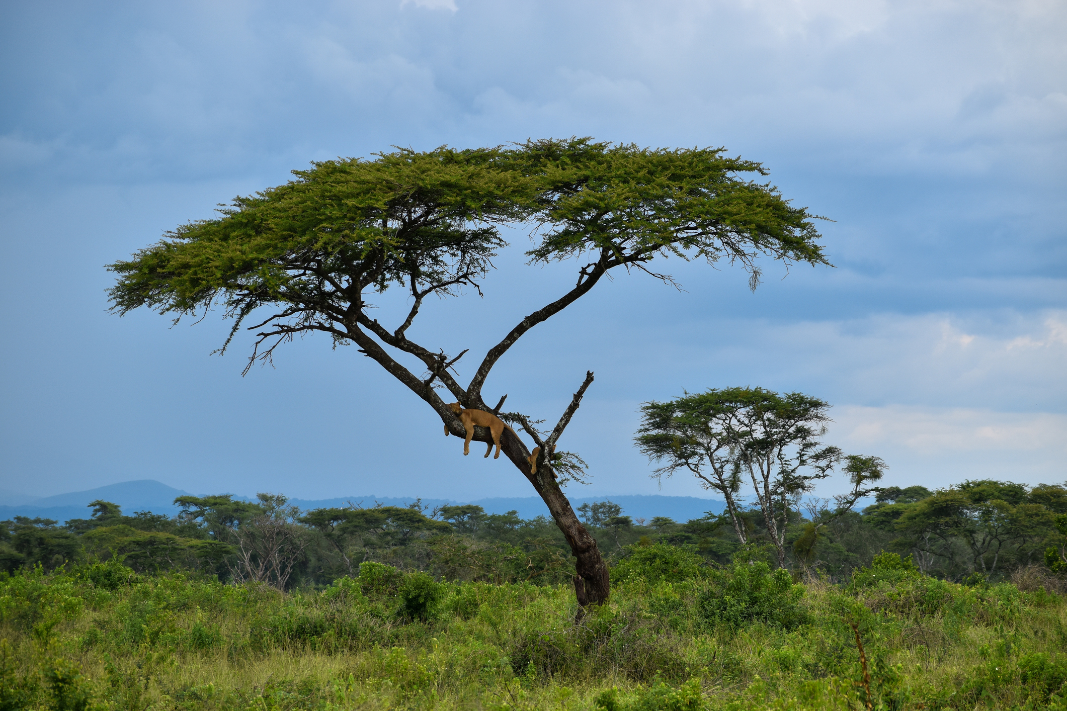 In het zuiden van Queen Elizabeth National Park wacht een bijzondere wildsafari in een gebied dat wereldwijd bekendstaat om een zeldzaam fenomeen: de boomklimmende leeuwen. Tijdens deze safari doorkruisen we een afwisselend landschap van open savannes, moerasgebieden en karakteristieke vijgenbomen, die een belangrijke rol spelen in het leven van deze indrukwekkende roofdieren. In de warme middagzon is de kans groot dat we de leeuwen zien luieren in de takken van de vijgenbomen. Hoog boven de grond zoeken ze verkoeling, ontspannen en alert tegelijk — een fascinerend en fotogeniek schouwspel dat je nergens anders zo gemakkelijk tegenkomt. Maar ook buiten deze iconische katten is het gebied rijk aan wild. Olifanten trekken rustig door het landschap, buffelkuddes grazen op de vlaktes en sierlijke topi’s en Uganda kobs laten zich regelmatig zien. Met een beetje geluk kruisen nog meer diersoorten ons pad, wat elke rit weer verrassend maakt.